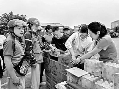 南京市浦口区江浦街道为快递小哥赠送解暑饮料。王新宇摄/光明图片
