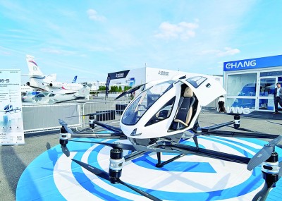 6月16日,在法国巴黎近郊举行的第55届巴黎航展上,中国亿航智能公司展出EH216-S航空器。新华社发