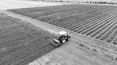 6月21日是夏至节气,河南省许昌市建安区农民抢抓农时,积极开展田间农事活动。图为当日,在建安区陈曹乡高标准农田示范园区,农民驾驶农机在田间劳作。牛书培摄/光明图片