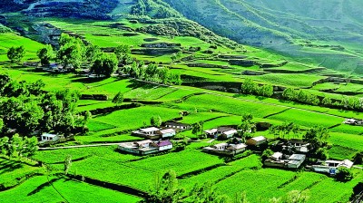6月19日,祁连山国家公园甘肃省张掖市民乐县丰乐镇段雨后初晴,山下的丰乐镇易家湾村生机勃勃,犹如一幅美丽画卷。王将摄/光明图片