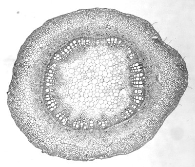 构树枝条横切面显微图,构树是中国古代造纸的重要原料。图片选自《纸落云烟——中国传统手工纸概览》