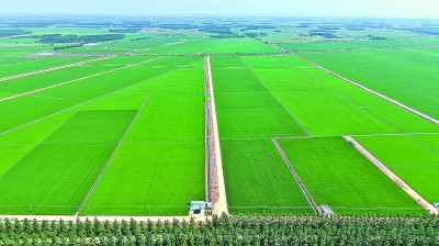 近年来,黑龙江垦区北大荒集团以保护黑土耕地、有效提高粮食生产能力为目标,用地与养地相结合,推动农业绿色可持续发展。图为6月24日,在该集团一处高标准农田拍摄的水稻秧苗。新华社发