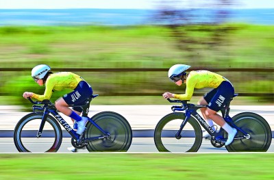 6月24日,2025年全国公路自行车锦标赛暨全国青年公路自行车锦标赛第三届亚洲青年运动会选拔赛(鄂尔多斯)在内蒙古自治区鄂尔多斯市伊金霍洛旗鄂尔多斯文化产业园开幕。图为6月24日,车手在混合团体计时赛项目比赛中。王正摄/光明图片