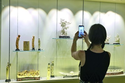 图①:6月26日,在罗马尼亚布加勒斯特,观众参观罗马尼亚国家艺术博物馆东方艺术展厅中的中国展区。新华社发