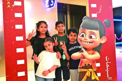 6月25日,在沙特阿拉伯利雅得,观众在《哪吒之魔童闹海》的宣传展板前拍照留念。新华社发