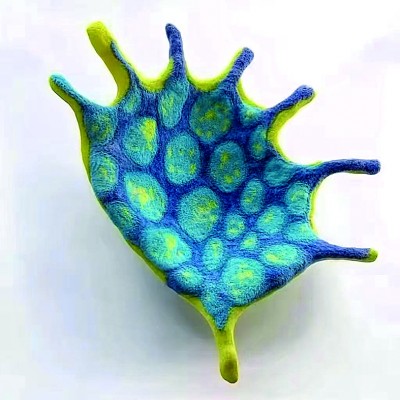 以生物微观结构为灵感的纤维艺术创作,其一大要点在于对真实生物或细胞的视觉再现,这种再现并非简单地以纤维材料塑造其结构模型,而是通过巧妙的创意与艺术手法,将生物微观结构所蕴含的独特美感融入纤维艺术作品中。艺术家们在创作过程中需深入研究生物微观结构的形态与肌理特征,并从中撷取富有艺术表现力的细节,将其转化为纤维艺术语言。这是一个“做加法”与“做减法”并存的创作过程。
