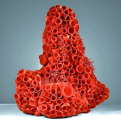 ④ 结合人体红细胞与珊瑚形态创作的纤维雕塑