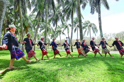 随着今年暑期旅游旺季临近,海南三亚文旅部门精心打造“清凉三亚·浪漫天涯”主题旅游季。图为6月28日,黎族女性同胞在三亚市南山文化旅游区跳舞、游玩。陈文武摄/光明图片