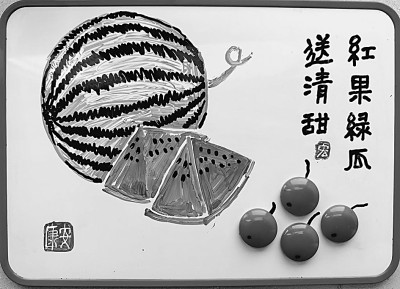 百岁后的母亲,没有什么食欲。我突发奇想,可以在写字板上画些好看的食物,逗母亲开心。我问母亲:“你想吃什么,我为你画。”母亲看着我,摇摇头,又点点头。我知道,她没什么想吃的,但想看我为她画点什么。我在写字板上画过西瓜,画过苹果,画过蔬菜,画过寿桃。而那四颗红磁石,变成了冰糖葫芦,变成了红荔枝、红樱桃、红山楂……