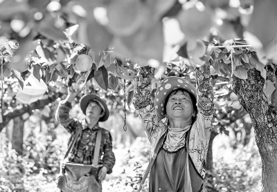 盛夏时节,江苏省句容市后白镇长里岗村丰之源梨园的梨果相继成熟,果农们忙着采摘、分拣、包装,供应市场。钟学满摄/光明图片