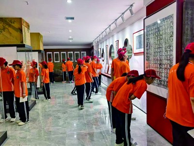 研学活动中,学生们在阎庄法帖展览馆欣赏书法拓片作品。亚世浩摄