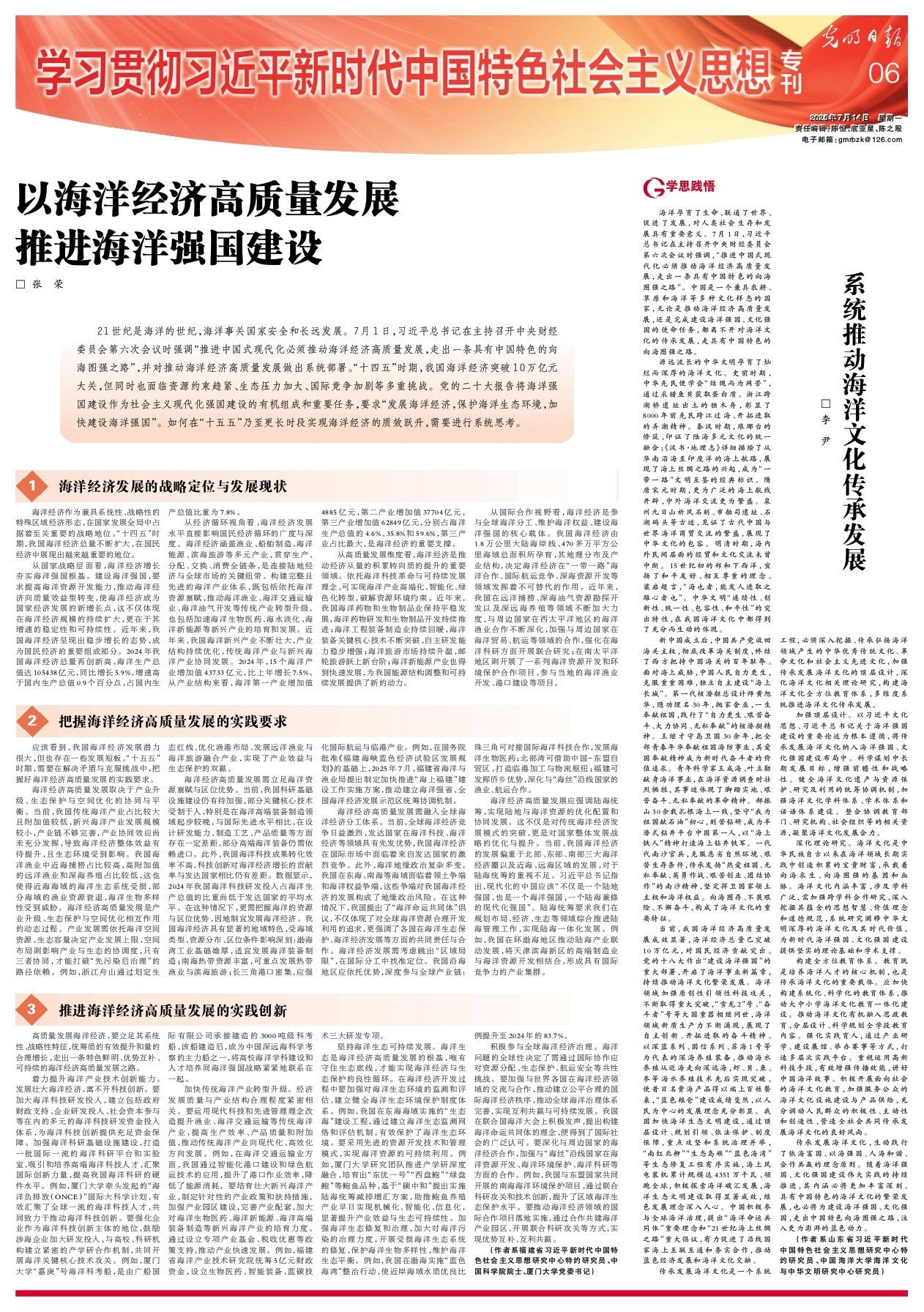以海洋经济高质量发展推进海洋强国建设