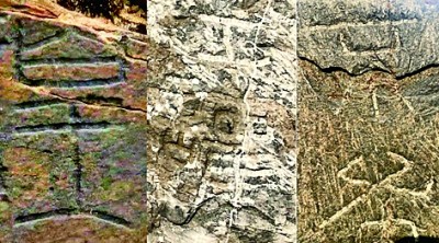 “昆仑石刻”(左)、秦《阎良刻石》(中)和汉龟山楚王墓塞石(右)刻痕比较。