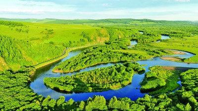 近日,位于内蒙古自治区呼伦贝尔市牙克石市的内蒙古免渡河国家湿地公园景致如画,美不胜收。新华社记者 马金瑞摄