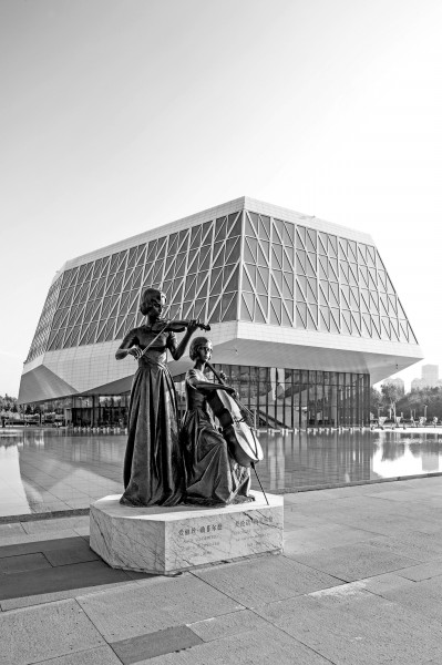 哈尔滨音乐厅前的勋菲尔德姐妹雕像。资料图片