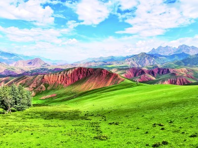 时值盛夏,位于青海省海北藏族自治州祁连县的卓尔山风景区,秀美的自然风光宛如一幅绚丽多彩的生态画卷。图为7月16日拍摄的卓尔山一景。成林摄/光明图片