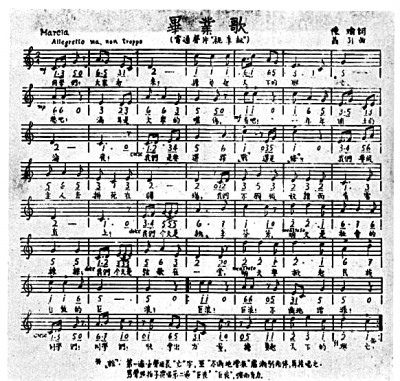 当时,《毕业歌》的创作面临着双重压力:一方面,需在电影配乐中融入强烈的抗日情绪;另一方面,国民党当局对左翼文艺作品的审查日益严厉。田汉在歌词中设计“我们是要选择战还是降”的灵魂拷问,既契合电影中青年觉醒的主题,又以隐喻手法规避国民党审查。聂耳在谱曲时强化了这一质问的力度。为了让旋律更有冲击力,聂耳借鉴了码头工人劳动号子的节奏,以进行曲风格强化紧迫感,尤其是“巨浪,巨浪,不断地增长”的重复段落,以模拟浪潮汹涌的气势,暗喻抗日救亡运动此起彼伏的态势,并将其转化为战斗的号角。