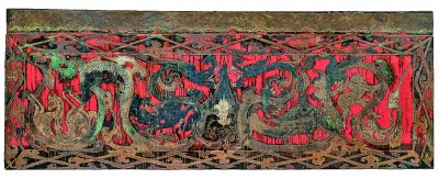 长沙马王堆一号墓朱地漆棺左侧画,图中绘有昆仑山。上海书画出版社供图