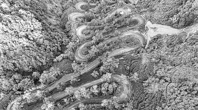 二十四道拐公路位于贵州省黔西南布依族苗族自治州晴隆县城西南处,从上至下依山势呈弯道盘旋,有24个弧形拐弯,公路依山而建,工程艰险,山势陡峭,弯道频繁,经半个多世纪的风雨侵蚀,如今仍保持完好,2006年经国务院批准列为全国重点文物保护单位。图为7月20日,二十四道拐公路景色。李允凤摄/光明图片