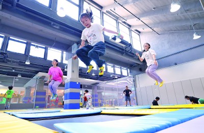 暑假期间,河北省石家庄市各大室内游乐场成为小朋友们欢乐避暑的好去处。图为7月22日,在石家庄市一家室内运动工厂,小朋友们体验“特色蹦床”项目。梁子栋摄/光明图片