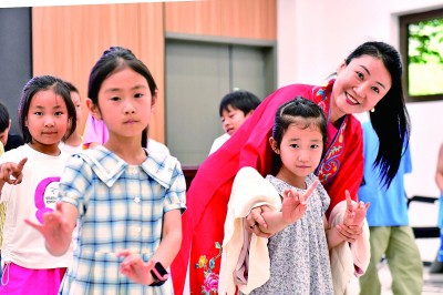 为丰富暑假儿童文化生活,山东省滨州市博兴县利用社区睦邻中心、新时代文明实践中心(站)等场所,招募返乡大学生、文化志愿者,打造“滨滨学堂”,开展形式多样的活动,让孩子们度过一个欢乐、充实的暑假。图为7月23日,博兴县戏剧团的孙娟娟在教孩子们戏剧表演。 新华社记者 郭绪雷摄