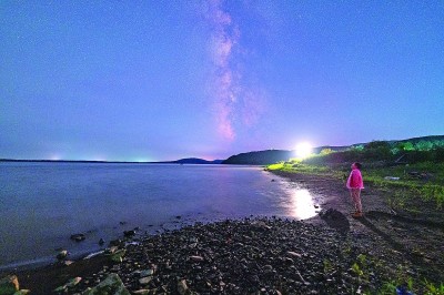 银河落九天 夏季是银河最佳观赏季,七八月入夜后,银河会从东北方地平线的位置向南方延伸,横跨整个夜空。当银河最亮的银心部分过上中天时,银河看起来会与地面垂直而立,银白色的“光瀑”仿佛从高空直泻而下,展现出“银河落九天”的壮丽景象。图为7月21日,哈尔滨西泉眼水库,星空摄影爱好者在观赏“银河垂立”景象。 新华社发(刘大鹏摄)