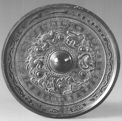 1988年莫测境在《文物》刊布的广西钟山县公安乡里太村出土的一面铜镜,有铭文一周:“青盖作镜真大好,上有仙人不知老,渴饮玉泉饥食枣,浮游名山采芝草,长保二亲国之保。”