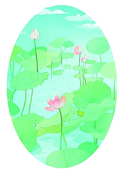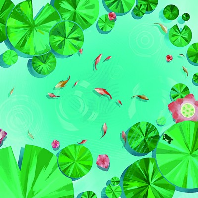作品采用图形感强烈的设计语言,以高饱和色调表现莲叶舒展、鱼儿畅游的热闹场景,给人以清新明快的视觉感受。