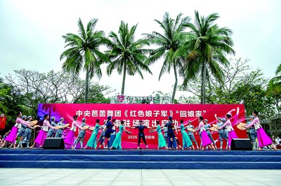 清澈的万泉河畔,红色娘子军纪念园内,中央芭蕾舞团携经典剧目《红色娘子军》“回娘家”。洪常青扮演者武思明难掩激动:“我们将用精彩演出完成精神的寻根,坚持不懈地弘扬这片热土上的红色精神。”