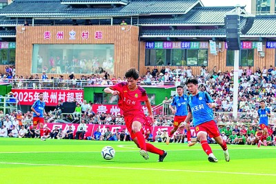 7月26日,贵州省黔东南苗族侗族自治州榕江县“村超”举行6月下旬遭受特大洪水后的首场超级星期六活动。激情球赛、文艺汇演、无人机表演、烟花秀等轮番上演,吸引众多游客前来观看,活动现场人山人海、热闹非凡。罗京来摄/光明图片