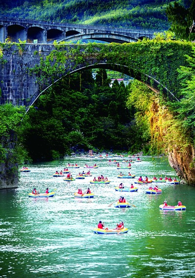 田园变乐园,村庄变景区。油溪桥村成功创建国家3A级旅游景区,开发出梅山峡谷、油溪河漂流等主要景区7处,建成非遗展览馆等观光园25处。
