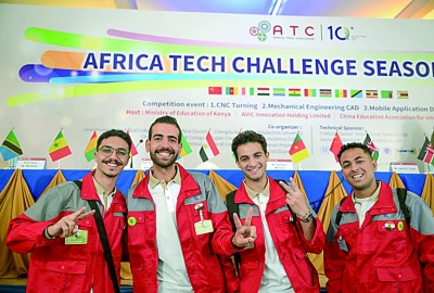 由中航科创有限公司、肯尼亚教育部和中国教育国际交流协会联合主办的第十届非洲职业技能挑战赛7月28日在肯尼亚首都内罗毕开幕。图为来自埃及的参赛选手在开幕式后合影。新华社发