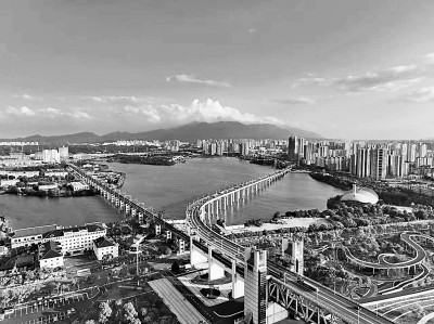 7月30日,江西九江浔阳区景色宜人,大桥、城市与江水、远山相互映衬,勾勒出水美、岸美、产业美的“最美长江岸线”。熊婷婷摄/光明图片