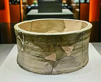 要不是专家介绍,记者实在难以想象,展柜里一只相貌平常的灰陶器竟然是一件“重器”!这是一只出土于古州城遗址的战国秦汉时期的陶量——没错,就是当年秦始皇统一的“度量衡”的“量”,用以测算容积的。中国社会科学院考古研究所副研究员、雄安考古队队长何岁利介绍,经过实验,这只量的容积是2067毫升,相当于汉代的10升(1斗)。看着它,“不为五斗米折腰”突然就具象了。在何岁利的指点下,记者看到陶量的外壁靠近口沿处刻画着“都乡定里”四个字。他介绍,“都乡”是秦汉时期郡县治所所在的行政单位。难怪这只都乡定里官方使用的陶量被何岁利戏称为“重器”,因为它实证了古州城(时称“鄚城”)是当时鄚县的治所——原来,雄安这座“新城”竟有着至少两千年的建城史。