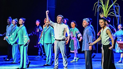 7月30日晚,民族歌舞剧《山河同心》在贵州省贵阳市上演。该剧将屯堡地戏、苗族歌舞、布依族音乐与现代舞台融合,讲述抗日战争时期安顺地区群众抗战的故事,展现了各族儿女在抗日战争中的家国情怀。图为演员在表演中。新华社记者 陶亮摄
