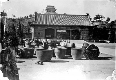 抗战期间,由于武器的供应严重不足,为了扩大生产武器弹药,日军先后三次在北平进行强制“献纳铜品运动”。1943年,日军竟要求故宫博物院将故宫内所有用来贮水救火的大铜缸交出。这些铜缸历经明清两代,是重要文物,大多按历史原貌摆放在参观路线上的显著位置,早就被日本人盯上。留守北平的故宫博物院员工为保护这些文物花费了大量心思。他们将铜缸逐一点查,分类造册,统计出刻有明清款识的铜缸98件;虽无款识,但是铜色、式样类似明代所造的125件;无款识且式样不能断定年代的54件。针对日军前后三次强征铜品,故宫博物院反复强调这些铜器都是古物,且均已编号登册,不能交出。最终为了确保整体文物安全,不得不将无款识且不能断定年代的铜缸交出去,保证了其他精品铜缸幸免于难。