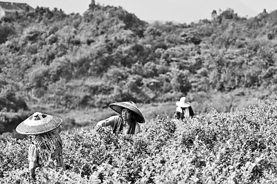 近年来,湖北省来凤县围绕藤茶全产业链建设,培育和壮大藤茶产业龙头企业。如今,全县藤茶种植面积达10.2万亩,带动两万余户农户增收。图为8月2日,来凤县翔凤镇狮立坪村藤茶基地,村民在采摘藤茶。新华社记者 杜子璇摄