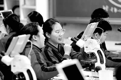 北京师范大学附属中学举行基于学科课程纲要和单元学历案的课堂教学改进研讨会,学生在分论坛上的研究课上课。新华社发