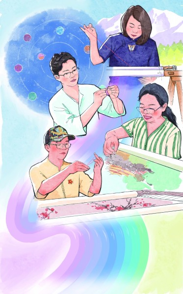 从《星空》到《山海经》,张雪始终践行着“探索苏绣无限可能性”的信条。“一根丝线能抵达的远方,远比我们想象的更辽阔。”他说,“苏绣的语言,能对接古今,更能对话天地,我愿意用一辈子去探索深耕。”