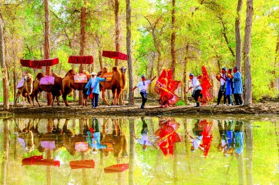 离阿瓦提县文化馆20余公里的刀郎部落景区内,烈日当空,可游客们的心情依然雀跃。千年胡杨林间,随着刀郎木卡姆的欢快旋律骤然响起,身着民族服饰的演员们双臂舒展如鹰隼展翅,脚步铿锵似马蹄踏浪。他们就像塔里木荒原上跳动的生命火焰,让游客的情绪被瞬间点燃。