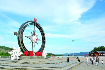 暑假期间,有着“神州北极”之称的黑龙江省漠河市旅游市场火热,吸引全国各地游客前来“找北”避暑。图为近日,游客在漠河市北极村的七星广场游玩、拍照。新华社记者 王建威摄