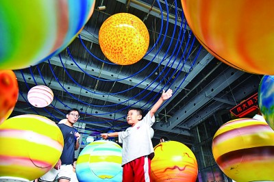 暑假期间,各地孩子参加丰富多彩的文化体育活动,充实假期生活。图为8月10日,小朋友在南京科技馆体验科技装置。新华社发(杨素平摄)