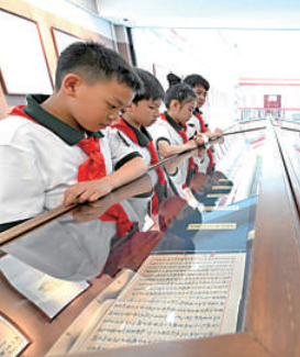 河北石家庄市实验小学学生在石家庄市图书馆参观手抄中国名著展览。新华社发