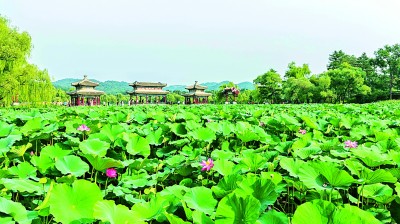 8月12日,游客在河北承德市避暑山庄景区观景游玩,乐享夏日时光。刘满仓摄/光明图片