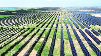 巴彦淖尔市光伏治沙基地。姚鑫摄/光明图片