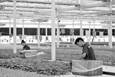 位于新疆阿克苏地区的库车市甬库同心村智慧农业植物工厂,是浙江省宁波市对口援疆的重点项目之一。该工厂通过对植物生长环境的温度、湿度、光照、二氧化碳浓度及营养液等条件进行智能调控,实现农作物全年稳定生产。图为8月13日,工作人员在收割蔬菜。新华社记者 刘佳琪摄