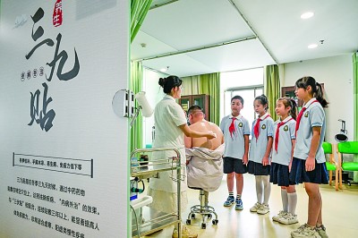 8月14日,安徽省合肥市海棠街道清华社区组织辖区小学生走进社区卫生服务中心,让他们近距离了解中医诊断过程、体验中医魅力,弘扬传统中医药文化。赵明摄/光明图片