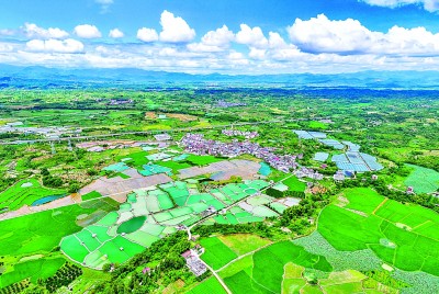 8月13日,江西省抚州市南丰县洽湾镇西坪村,连片的蔬菜大棚与田园、道路、村庄等相互映衬,构成一幅美丽乡村画卷。谢东摄/光明图片