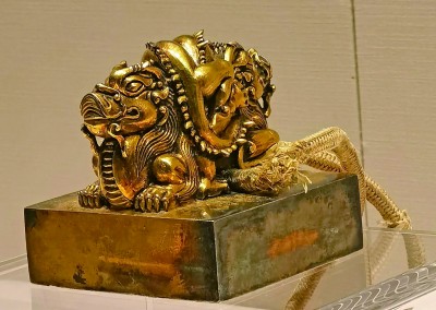 展览现场还特别展出20多方清代御用玺印,如“大清嗣天子宝”“敬天勤民之宝”等,与大众篆刻作品并列展出。这些印章的字体、设计、尺寸、材料等体现了清代的玺印制度、制作工艺和审美追求,古今辉映,凸显大众篆刻锐意创新的特质。