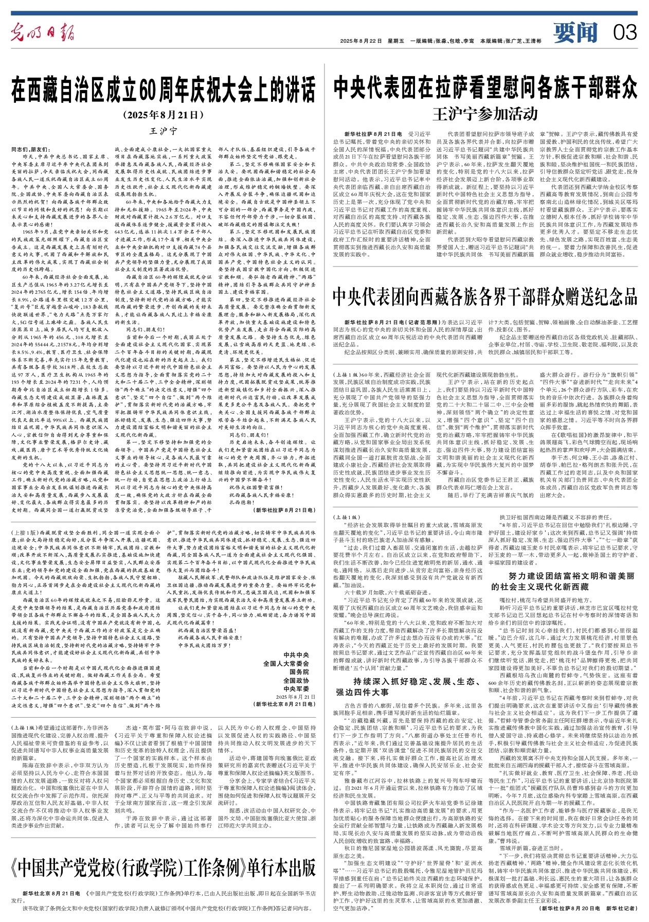 中央代表团向西藏各族各界干部群众赠送纪念品
